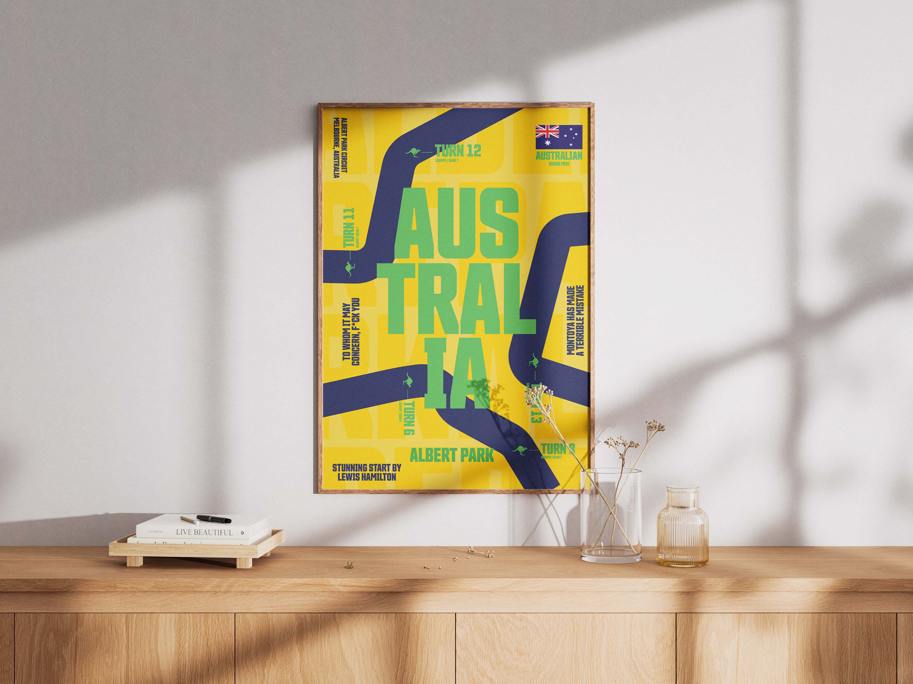 Most F1 poster series in the market look almost identical, with only the track name changing. I wanted the opposite: a collection where every poster has its own personality.