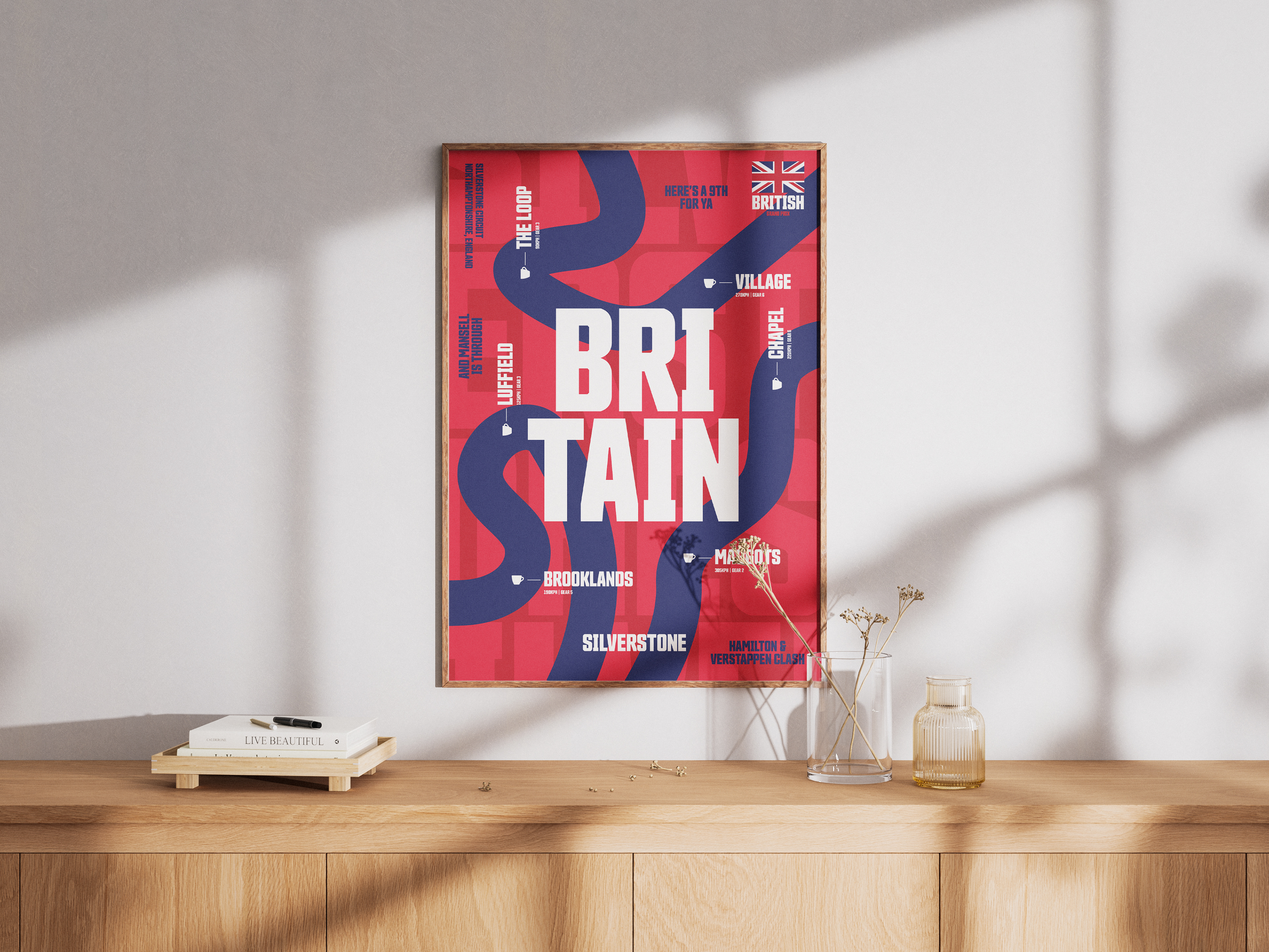 I used the national or regional colours tied to each circuit, combined with big, bold typography and tightly cropped recognisable sections of the circuit. Those cropped shapes mean fans know exactly what track they’re looking at the second they see it.